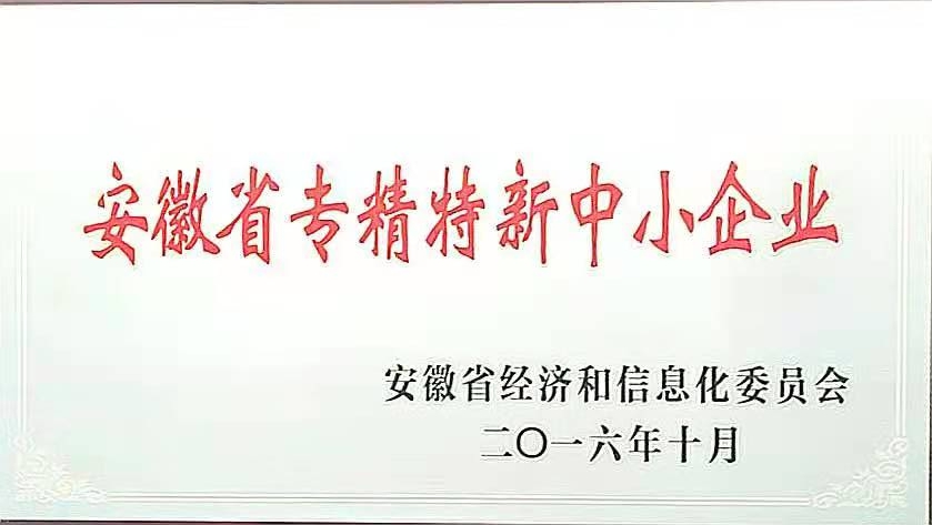 公司憑借其創新技術和優質產品,榮獲了“安徽高新技術企業”和“國家專精特新小巨人”等榮譽稱號;產品榮獲“安徽省工業精品”、“安徽省著名品牌”等榮譽稱號。